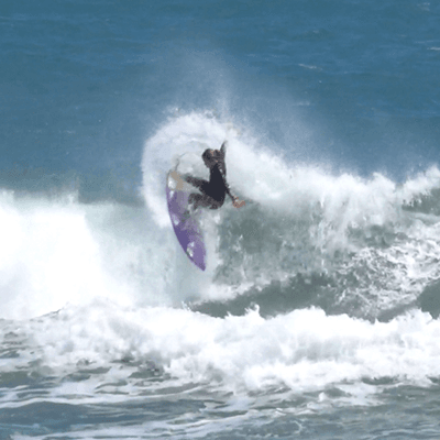 幼い頃からサーフィンを家族でし、中学生の時にプロ公認を得ることができ海外の試合と国内プロツアーに参戦しています。