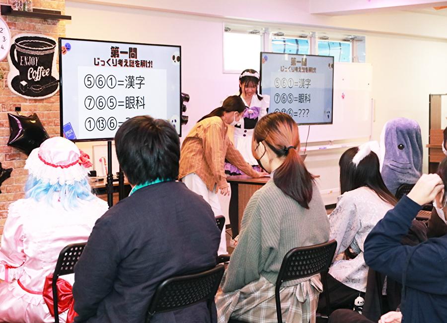 謎解きでは、一問でも正解すればオリジナルステッカーをもらえる、ということで生徒一同張り切りますが、程よい難易度の高さに「う〜ん」「わからないよ〜」などと唸る声が度々フロアに響きました。