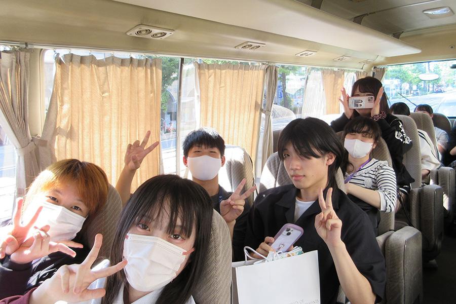イベント当日はバスを貸し切り! 到着前から生徒たちのテンションも上がり、コースが異なるため普段はあまり交流のない生徒同士も自然とコミュニケーションを取っていました。