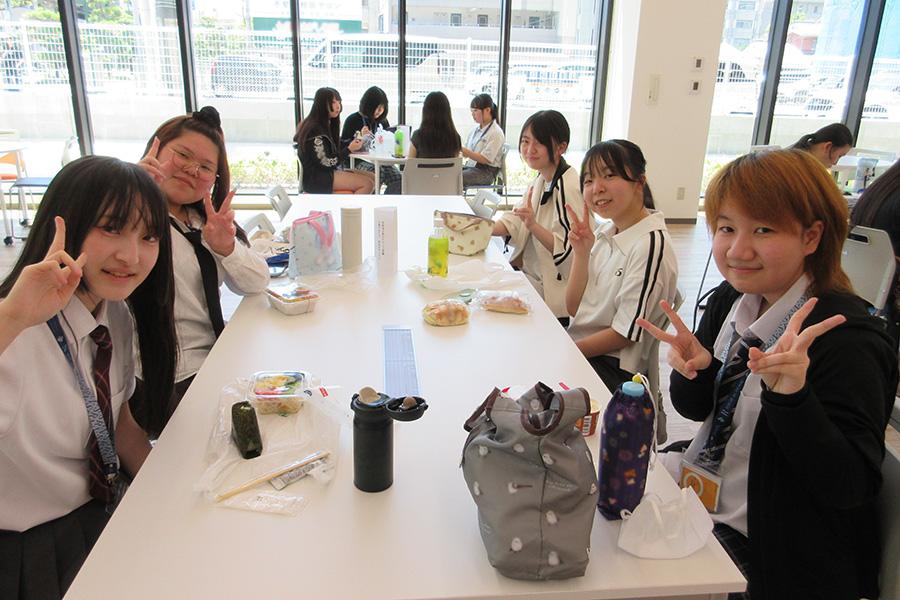 大学へ到着後、まずは学食でランチタイムです。皆笑顔がこぼれていました。
