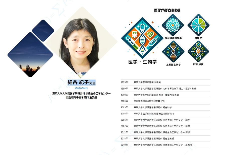 最初の講義は、細谷紀子先生(東京大学大学院医学系研究科 疾患生命工学センター 放射線分子医学部門 准教授)による放射線医学とがん治療などに関する講義です。