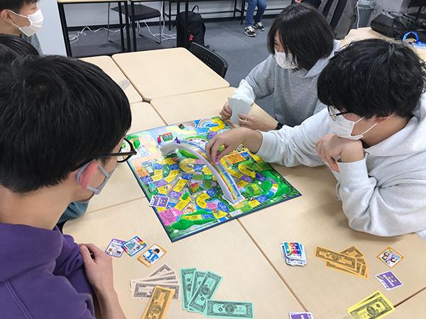さっそく、放課後に人生ゲームで盛り上がる生徒の姿がありました。はじめは緊張していた生徒からも、「やったー!マスを進めることができた!」「悔しい!」という声が聞こえ、先輩後輩分け隔てなく交流しながら打ち解けていました。