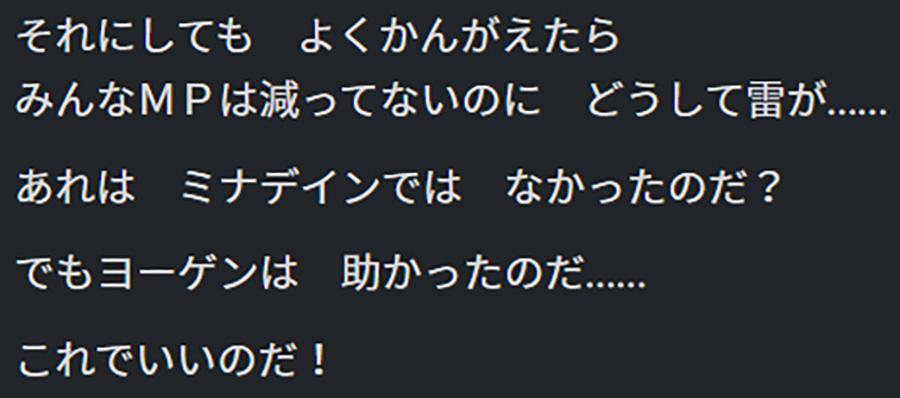 あいことばとは、仲間と協力して解き明かした伝説の雷呪文「ミナデイン」。