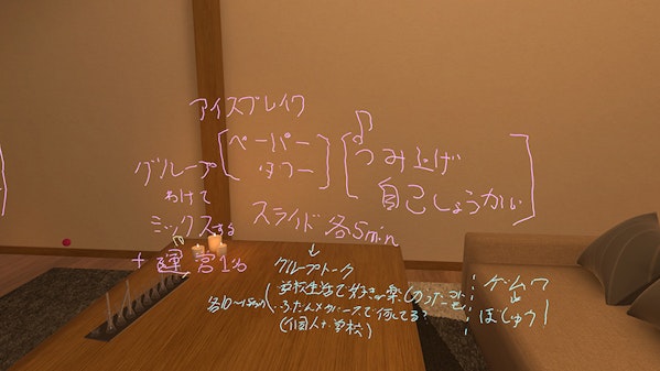 その場には、VRChat同好会から齋藤と小林、勇志国際高等学校からはこの委員会で代表を務める前田さんを含む3名が参加し、当日の流れやトークテーマなどについて話し合いました。
