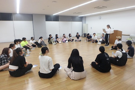 宿舎に荷物を置いてレッスン場に着くと、さっそくK-POPレッスンがスタート。