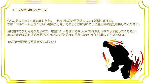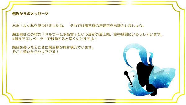 なんとか謎を解いて王国の奥の方にいた魔王の側近を見つけ出すと、次の案内が示されました。