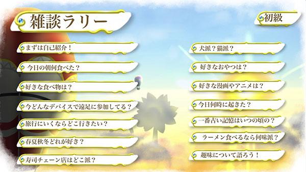 グループのメンバーと一緒に走りながら、準備された雑談ラリーを用いて共通の趣味の話で盛り上がります。