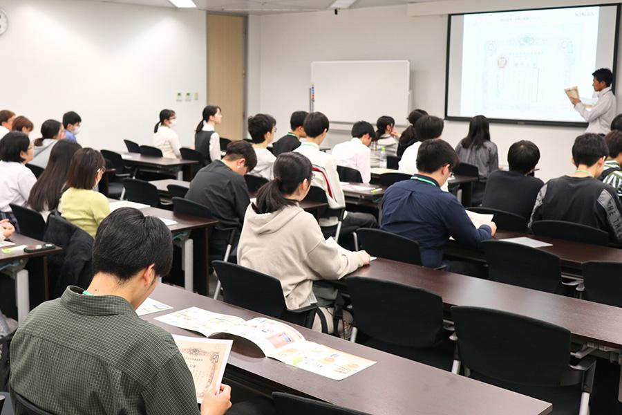 この訪問は、投資部の「基礎講座」へ野村ホールディングスがご協力いただいていることから実現しました。講座で金融業界への理解を深めた生徒たちから「実際の現場を見てみたい!」という声が多く寄せられ、学生向け金融経済教育の専門部署がある同社が快くご協力くださいました(man@bow野村の金融経済教育)。