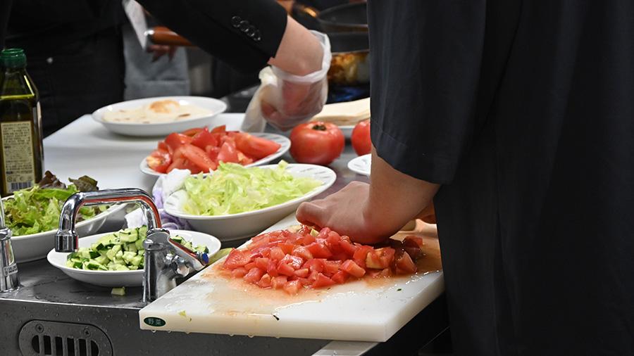 実は、これはただの調理実習ではなく「チーム対抗料理ワーク」というプログラムで、ビジョンを描き、計画を立て、役割分担をし、互いにフィードバックを行うという、チームワークのサイクルを回して調理を行いました。