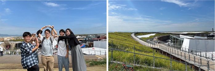 まず私たちのグループは、万博のシンボル「大屋根リング」へ。万博会場をぐるっと囲むこの全長約2kmのリングをエレベーターで上がると、空がぐんと近く感じられました。