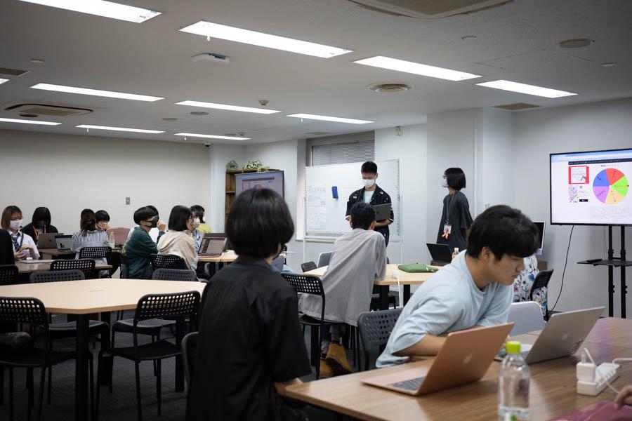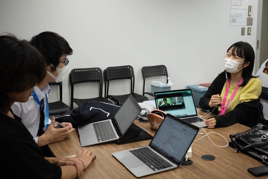 当日は都合が悪くキャンパスでのミーティングに参加できなかった生徒もビデオ会議ツール「Zoom」を使ってオンラインで参加し、アイデアの提案など自分にできることを見つけて取り組んでいました。