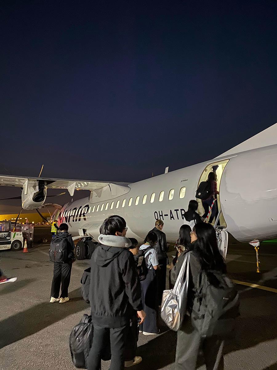 「時差ボケ解消のために頑張って起きていよう!」と映画を見たり、外の景色を眺めたりする参加者もいれば、単語帳で勉強しながら過ごす強者も…!?