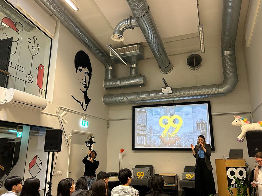 実際にどのような支援が行われているのか、どういった企業がLIFT99を利用しているのかなどについて、マネージャーのイリナさんにプレゼンをしていただきました。