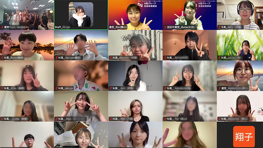 このイベントは、Zoomを通して海外からの留学生と繋がり、英語での雑談を楽しむ交流会です。N高等学校・S高等学校・R高等学校、N中等部から、全国の生徒たちが参加してくれました。