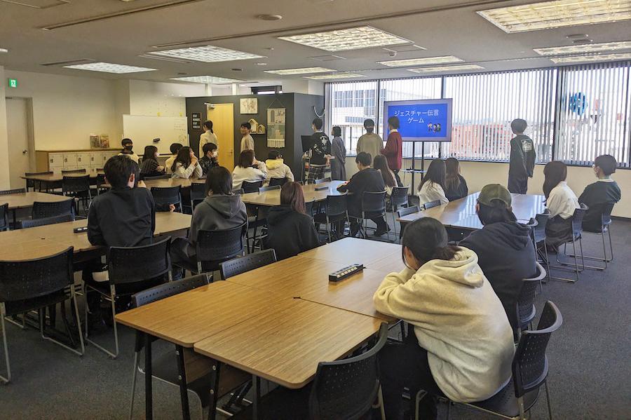 お題は、「卒業式で感動して泣いている人」や「N/S高でTA(ティーチング・アシスタント)をしている人」など少し難しいお題にしたため、生徒たちは苦労しながらも工夫してジェスチャーで表現していました。