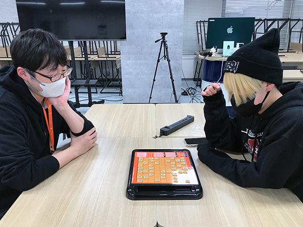 中にはメンターと将棋をする生徒も……。