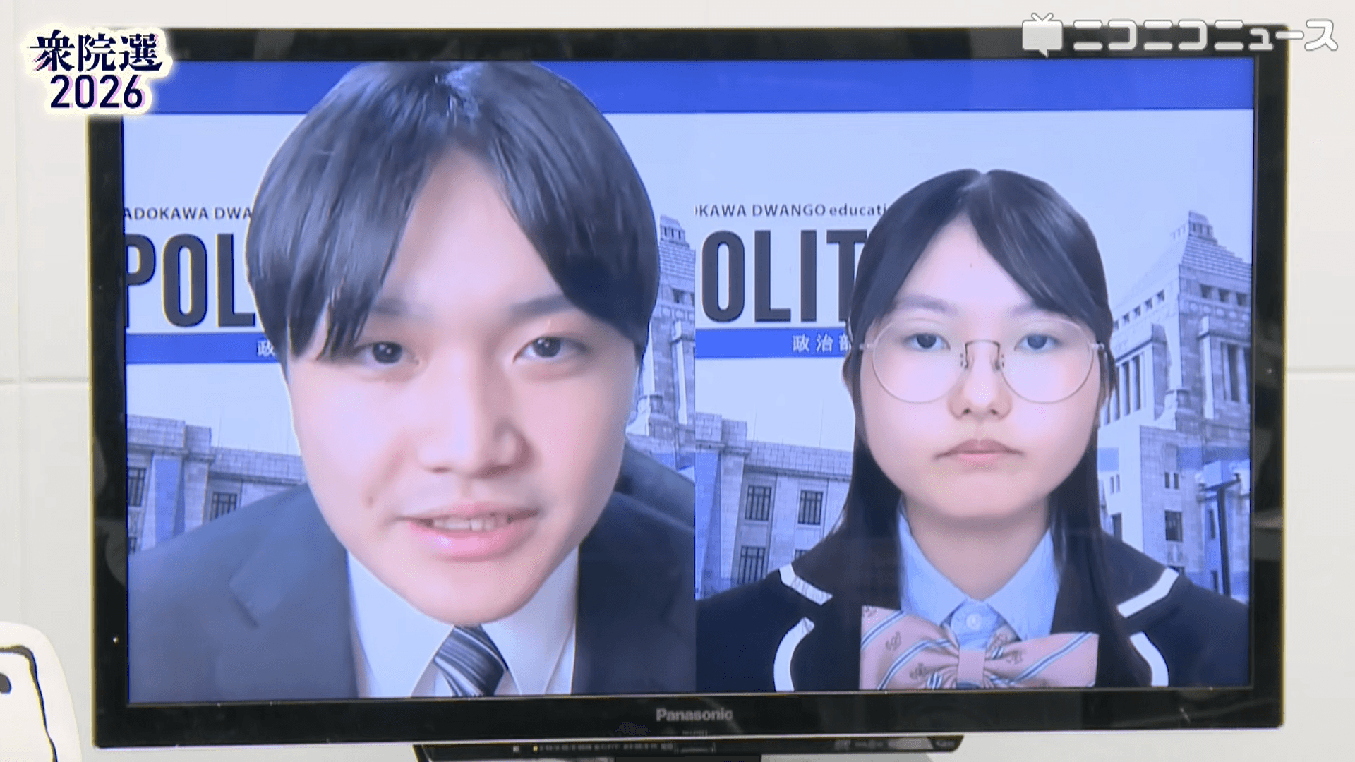 N高グループ政治部の生徒が、ニコニコ主催「【衆院選2026】高校生が直球質問! 日本共産党・田村智子委員長が語る日本のみらいとは?」に出演し、質問を行いました。