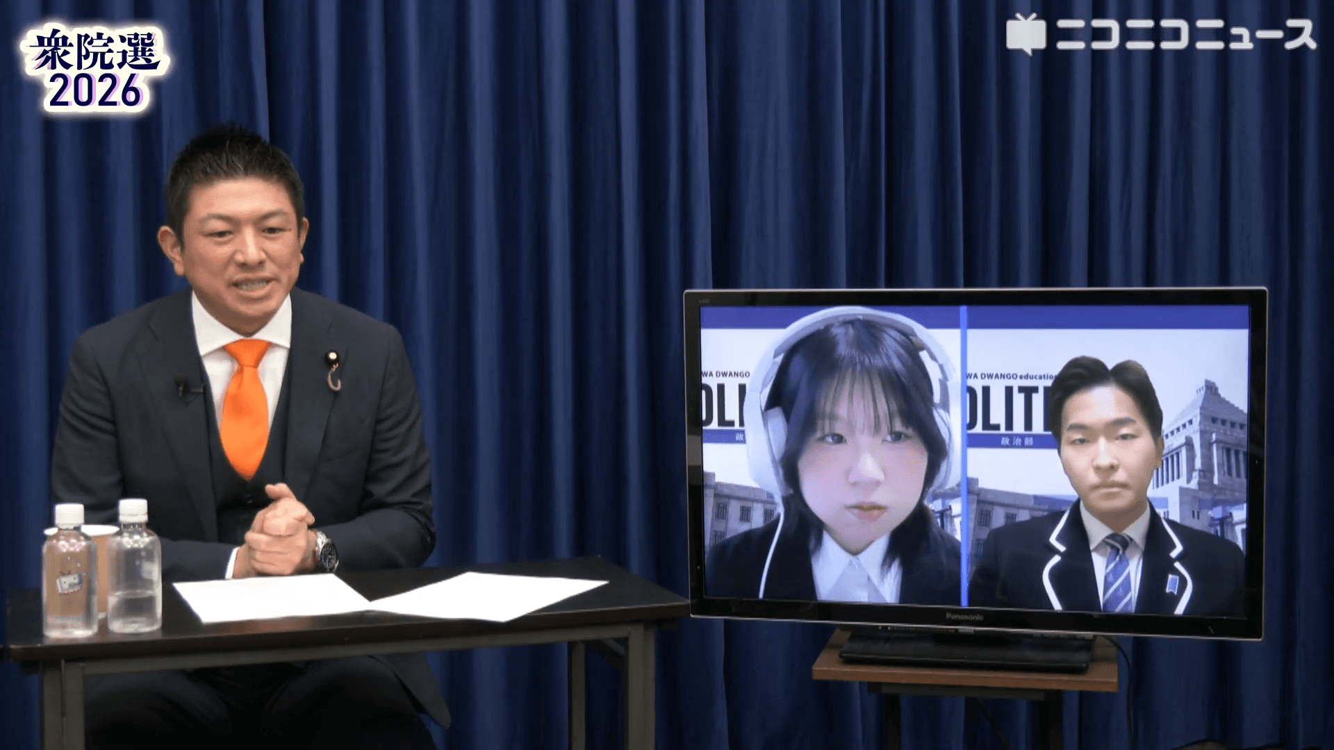 N高グループ政治部の生徒が、ニコニコ主催「【衆院選2026】高校生が直球質問! 参政党・神谷宗幣代表が語る日本のみらいとは?」に出演し、質問を行いました。