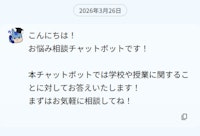 入学時によくある質問や新生活の悩みに答えるAIチャットボットを設置。適切な情報や問い合わせ先を案内します。入力内容は蓄積されず完全に削除される仕様のため、安心して相談することができます。