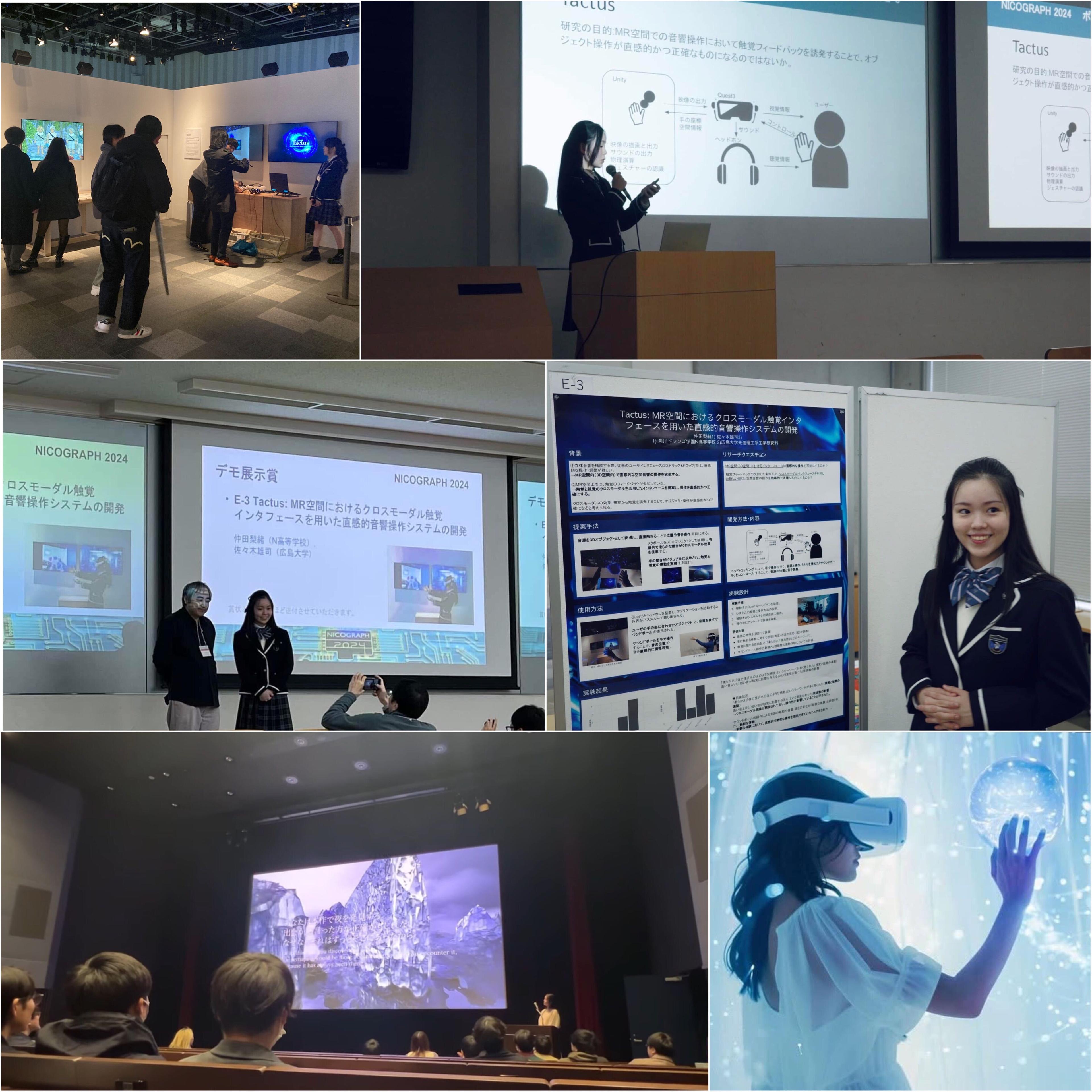 ・芸術科学会 NICOGRAPH2024 口頭発表(筆頭著者)「Tactus: MR空間におけるクロスモーダル触覚インタフェースを用いた直感的音響操作システムの開発」デモ展示賞 (2024年)