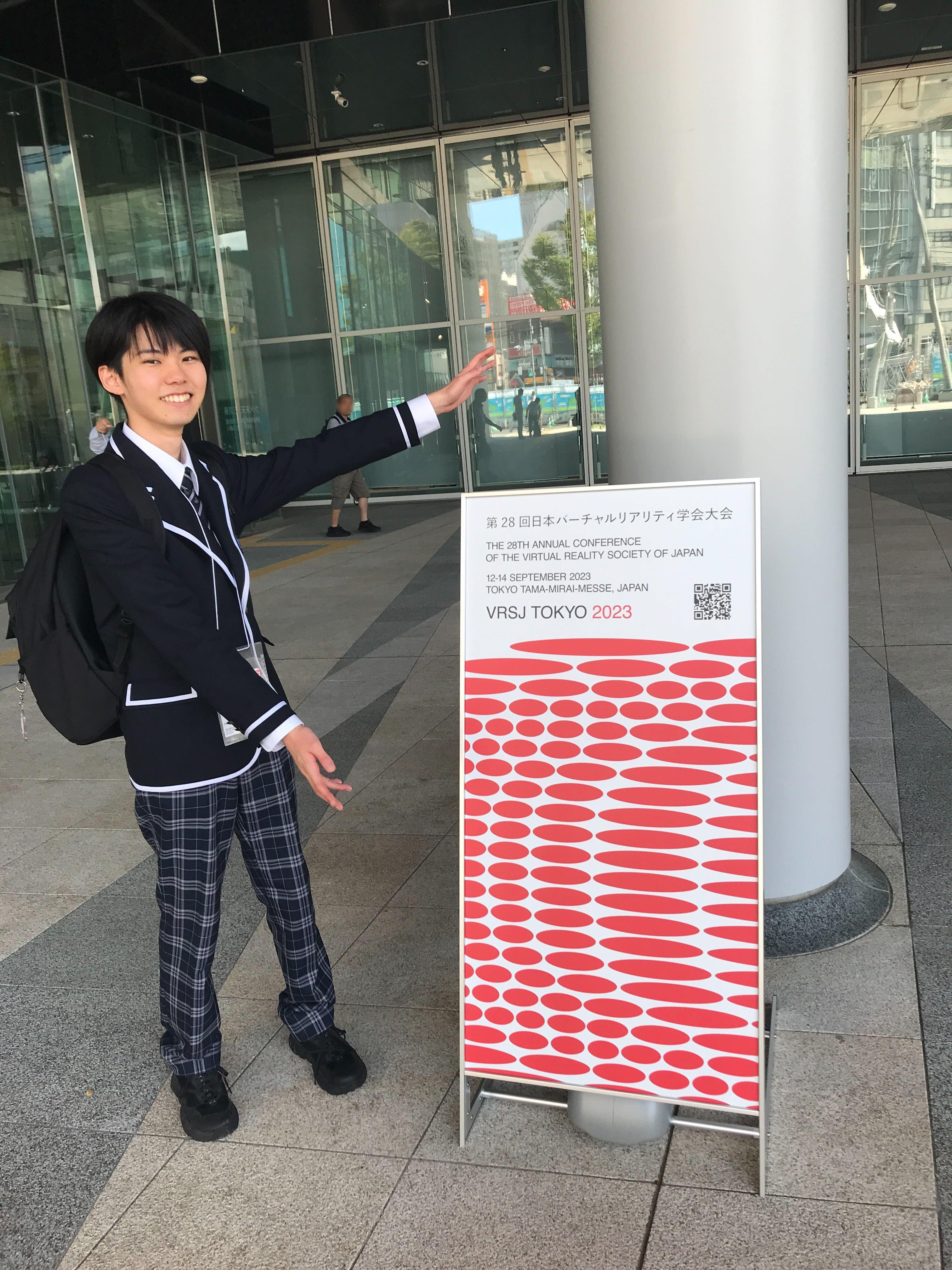 S高等学校入学でVR学習を始めたことをきっかけにVRにハマり、学内のVR利用の推進、イベントやワークショップなどの企画/運営を行いながら、VRを用いた教育の普及を目指す研究部員。学外では、UnityエンジニアとしてXR領域でのソフトウェア開発を行い、第13回高校生バイオサミットで入賞。XR領域と他分野を組み合わせた研究や開発を行う。VR教材の教育効果検証などを通し、VR教育が社会の"普通"になる方法を模索中。