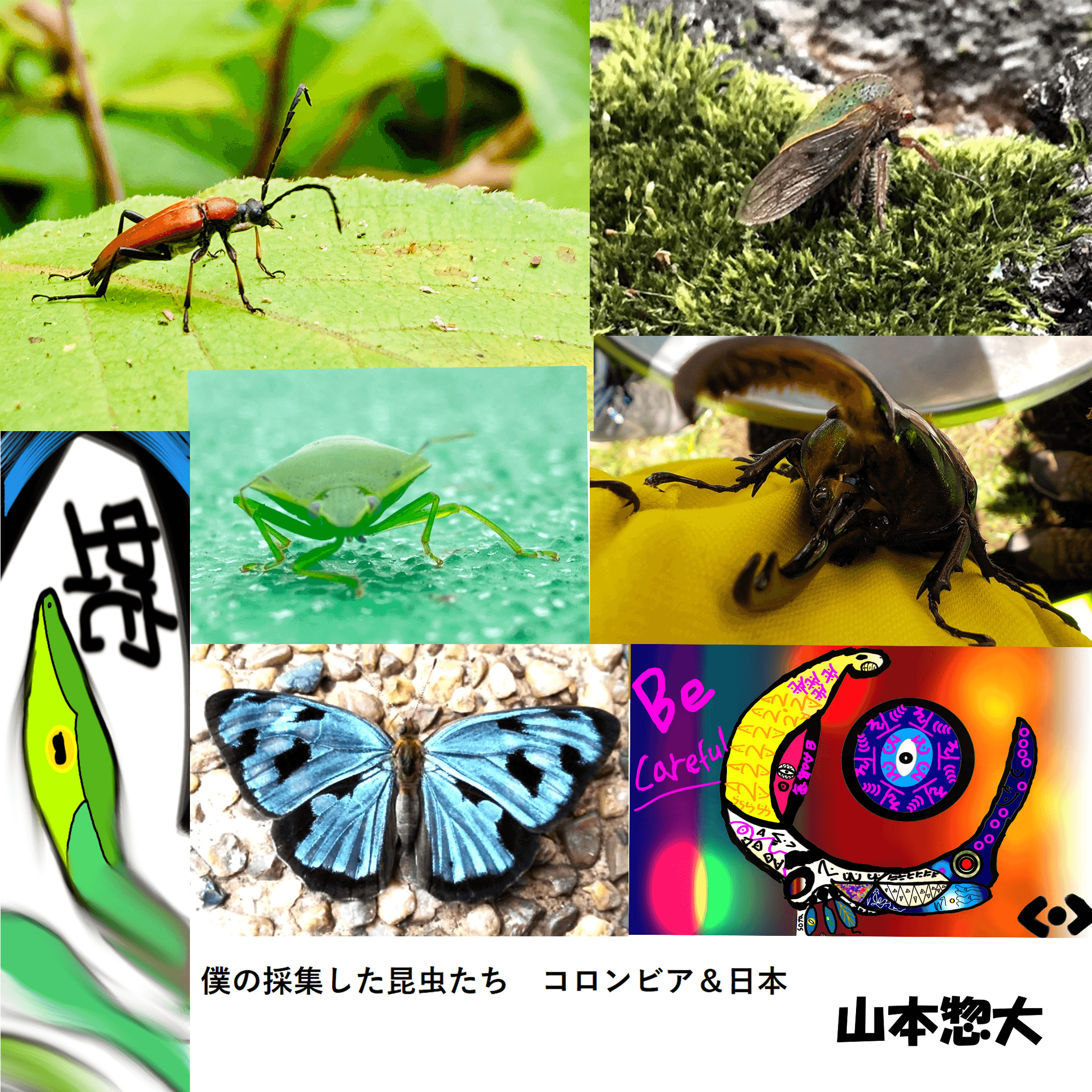 「昆虫に一途な研究部員、山本惣大です。昆虫のデザインにハマったのは、コロンビアでの3年間に出会った『ツノゼミ』がきっかけ。あの昆虫、見た目はまるで宇宙からの訪問者。