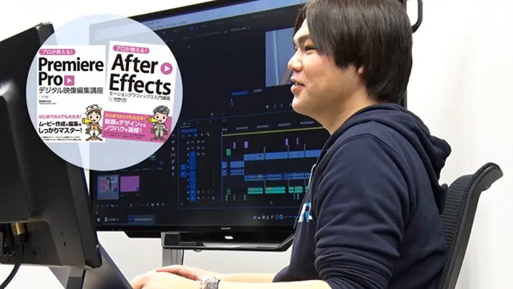 スマートフォンやデジタル一眼レフカメラなどの普及に加え、動画投稿サイトやSNSブームにより“ 動画編集” は身近なものになりました。プロの映像クリエイターからPremiere ProとAfter Effectsの実践的な技術を学べます。