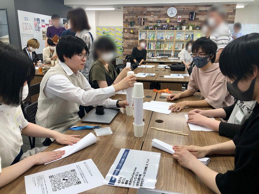 また、今回は、生徒同士の関係構築の際に行っているペーパータワーのワークを体験していただきました。