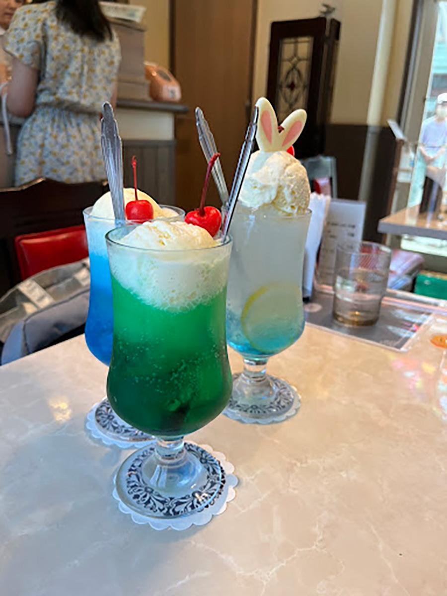 ちょうど期間限定イベントとして「クリィィィィイムソーダ大作戦‼」をやっていたところだったので、3人ともクリームソーダを注文。