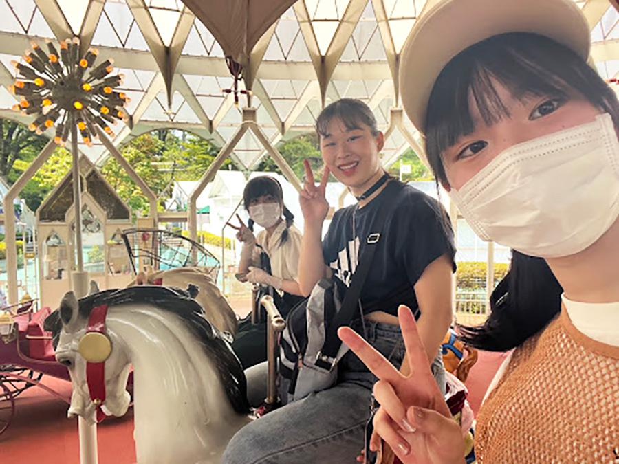 早速、メリーゴーラウンド、列車、コーヒーカップ、ジェットコースターとアトラクションも楽しんだところで、他の班員と合流。絶叫系のアトラクションが大好きな私はバイキングへ行き、班員とともに一番振れ幅が大きい端に座り、腹の底から湧くゾクゾクを目いっぱい楽しみました。