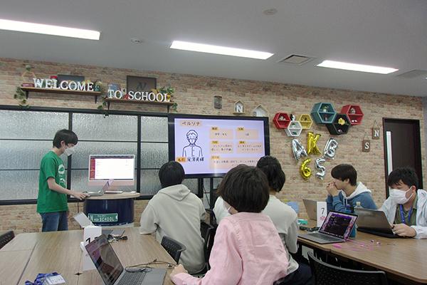 グループ内でアイデアを出し合って最終的にプレゼンテーションにまとめます。活発な意見交換が行われ「時にはどの意見を選ぶべきか?」「どこまで提案して良いものか?」と悩む生徒たちの姿も見受けられました。メンバー全員が良い成果物を完成させるために、何度も話し合って解決していった様子が印象的でした。発表では失敗することもありましたが、人前で話す際のアドリブ術も身に付けていて、生徒の成長を感じました。
