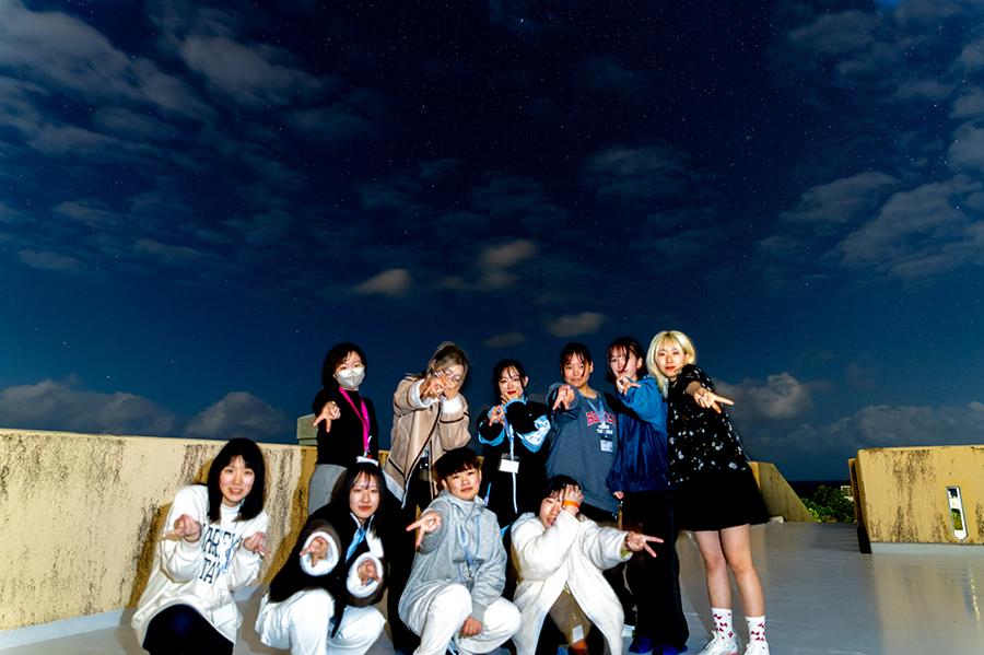 夕食のあと夜の学校を訪れ、屋上にて星空探索をしたり、食事会場で地元の三線奏者の方に演奏をしていただいたりなど、楽しい時間を過ごしました。
