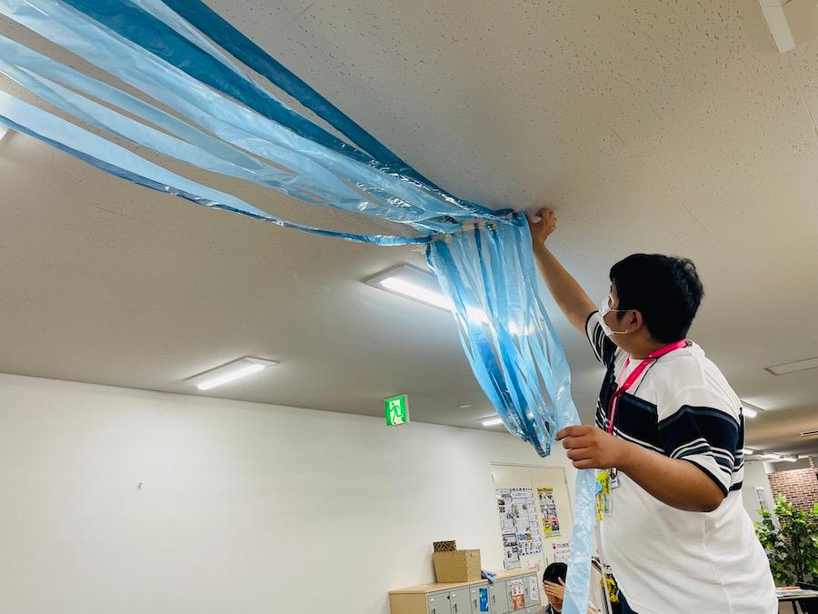 話し合った結果、今年の七夕イベントでは、キャンパスの天井には天の川をかけ、壁には笹を飾ることにしました。