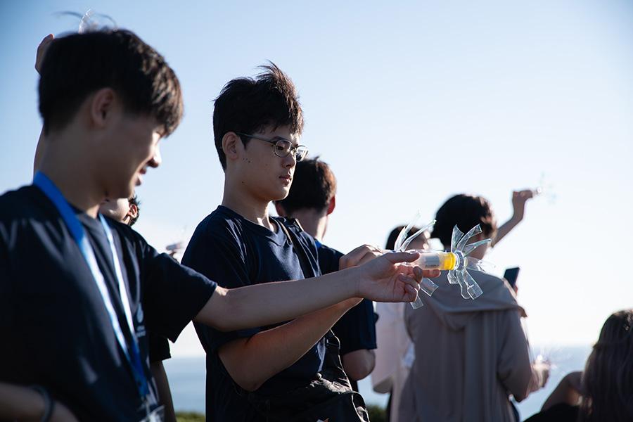 ペットボトルの固さや曲げ方によって発電のしやすさが変わるため、角度を変えるなど試行錯誤している人もいました。