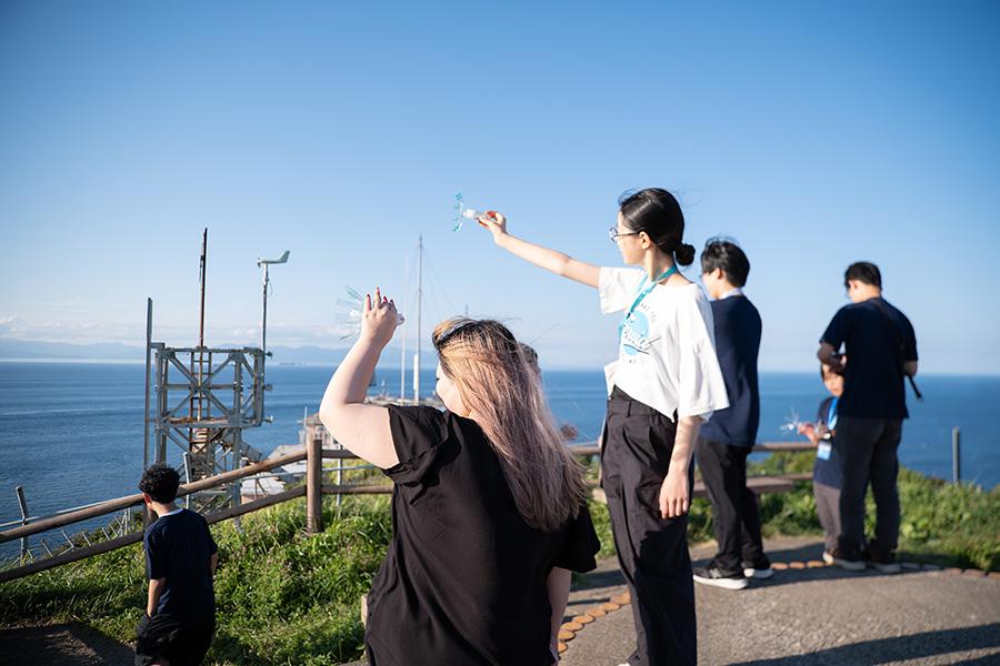 龍飛崎は風が強いことで有名なので、1日目に作った模型で発電ができるかを試してみました。