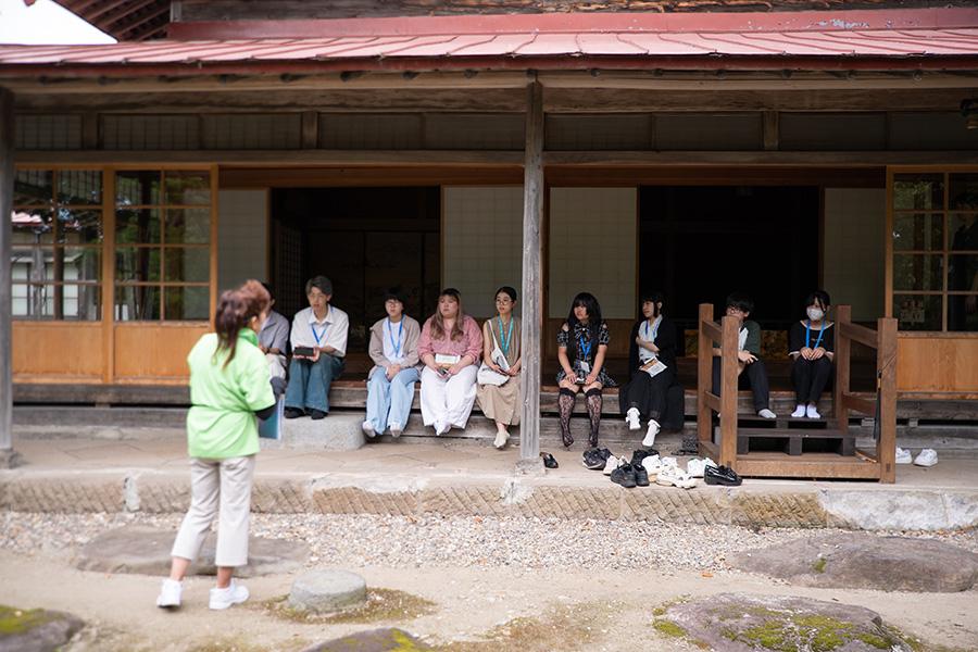 ガイドの話を聞きながら庭や部屋を見学し、宮越家について理解を深めました。