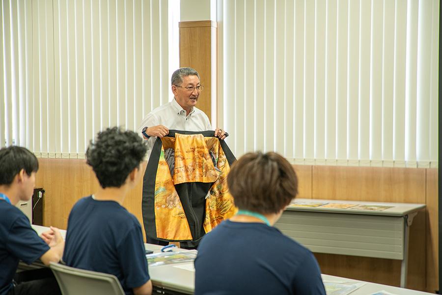 (町長さんのスーツの裏地は、宮越家(みやこしけ)にある襖絵…!中泊の旧家である宮越家が所蔵する襖絵は、大英博物館所蔵の作品と対であることが判明したばかりの貴重なもの)