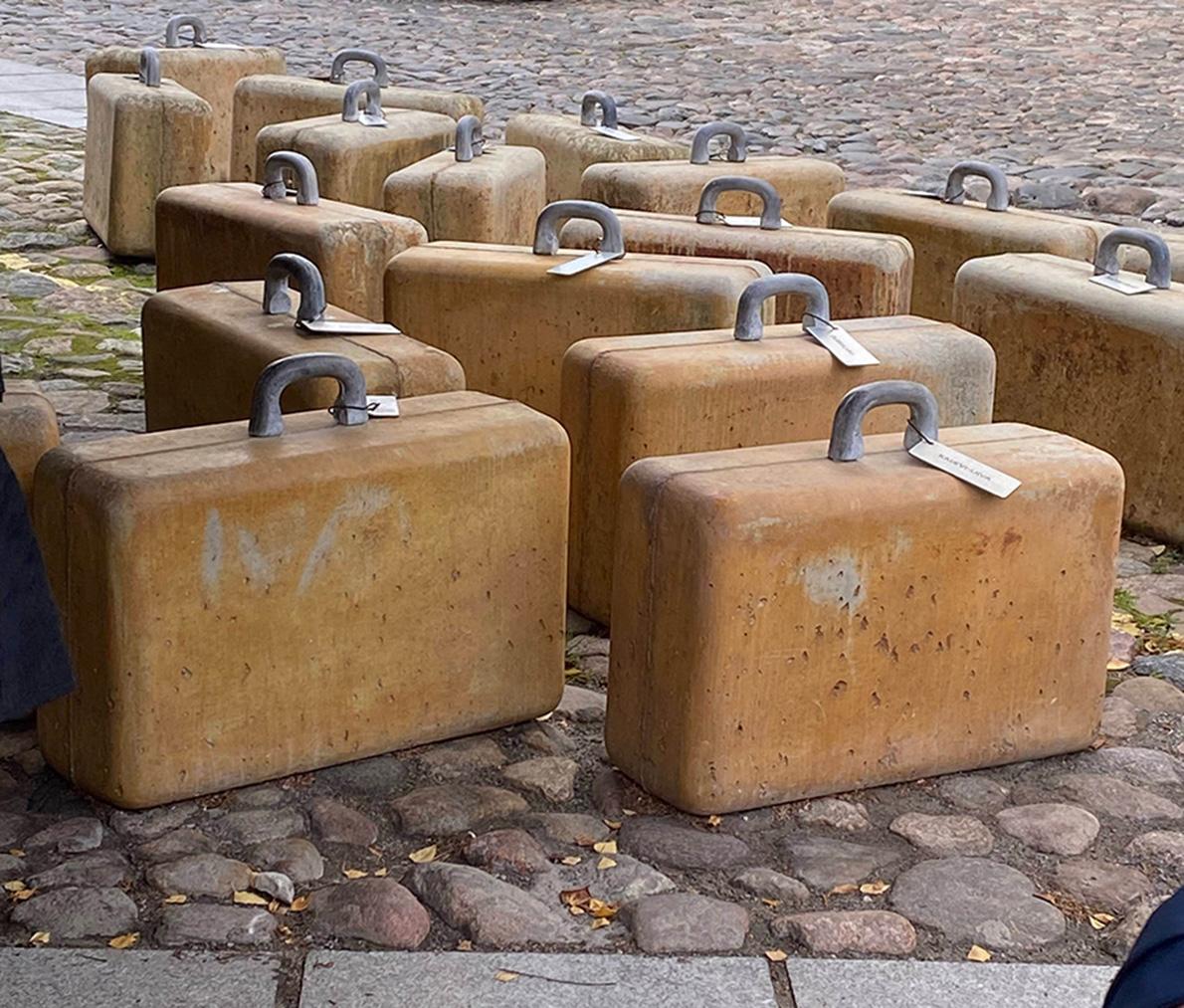 こちらは占領博物館の前にあるスーツケースのオブジェです。