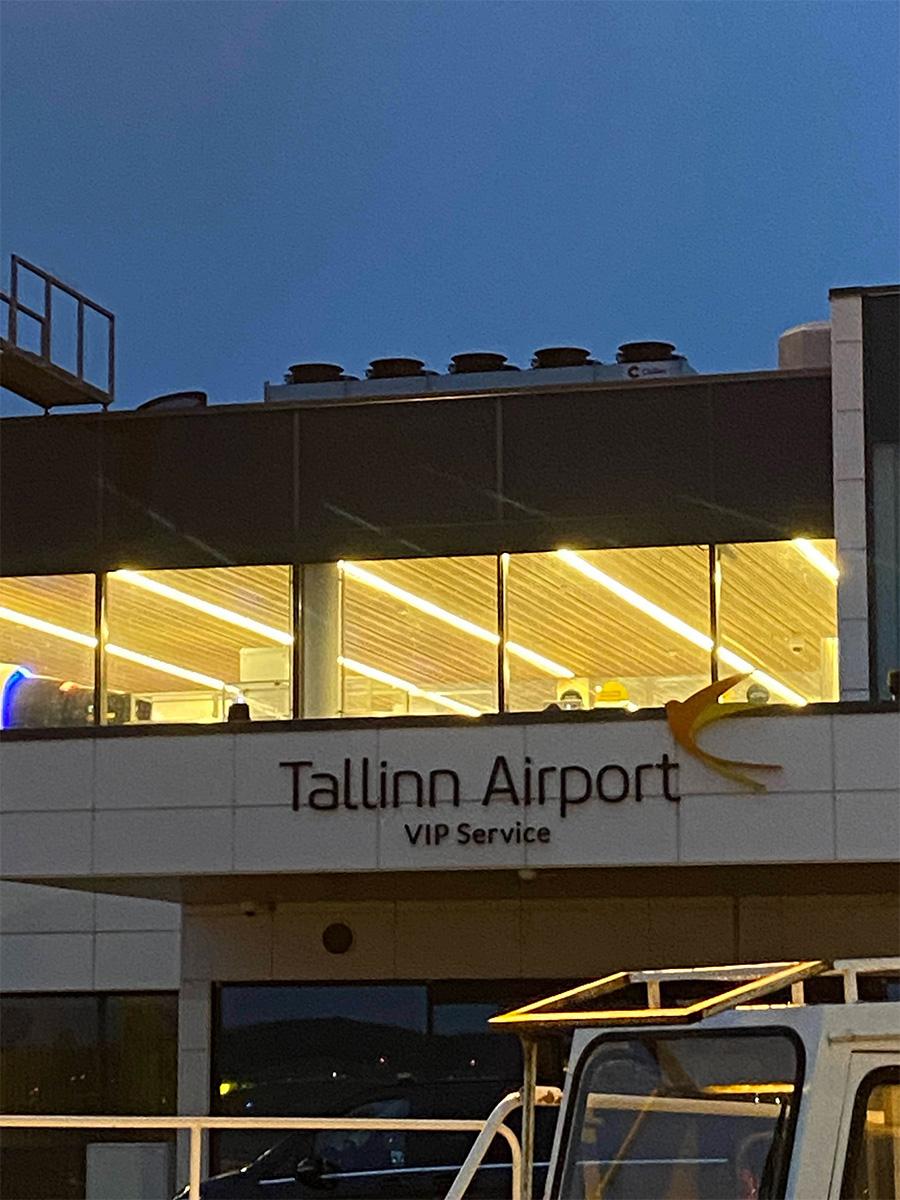 薄暗く肌寒い中、飛行機を乗り換えて目的地タリン空港へ。
