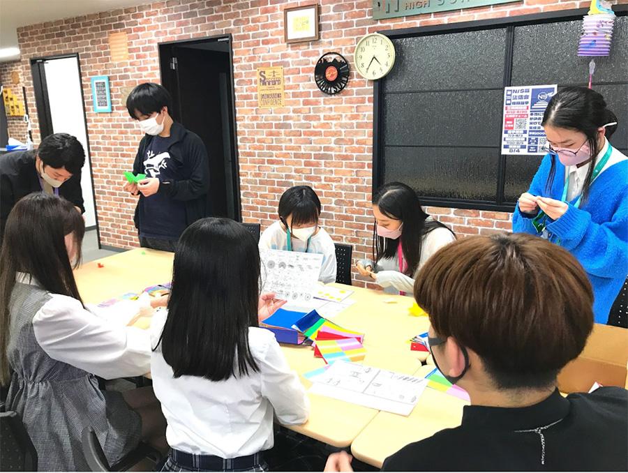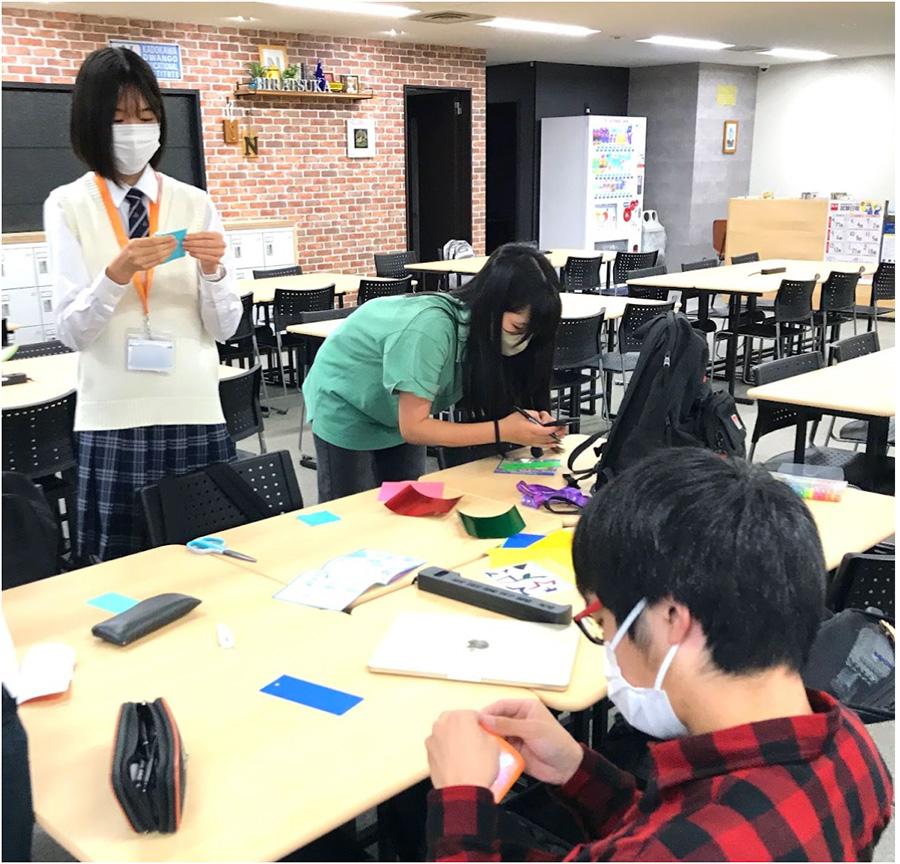 まだあまり話したことのない生徒同士で作業し、交流するという共通目標のもと、折り紙制作がスタート。