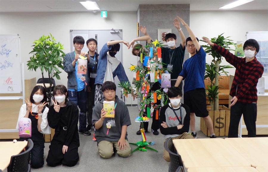 苦戦しつつも助け合いの声かけが次第に生まれ、新たな人間関係が広がり、いつのまにかワイワイ楽しそうな雰囲気に。「街もキャンパスも七夕一色でお祭り気分!」と、生徒たちの気持ちが一つになっていきます。