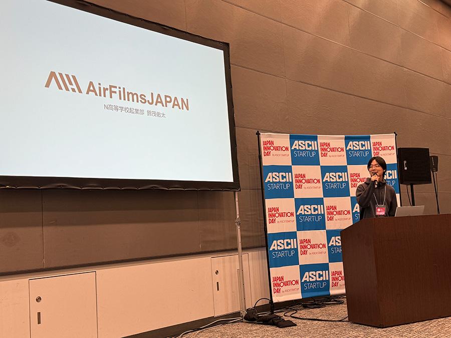 「Z世代起業家セッション」にも登壇した株式会社AirFilmsJapanの鈴茂さんは、昨年起業部で法人化した同社で、ドローン体験をギフトとして提供する今後のサービスプランについて発表しました。