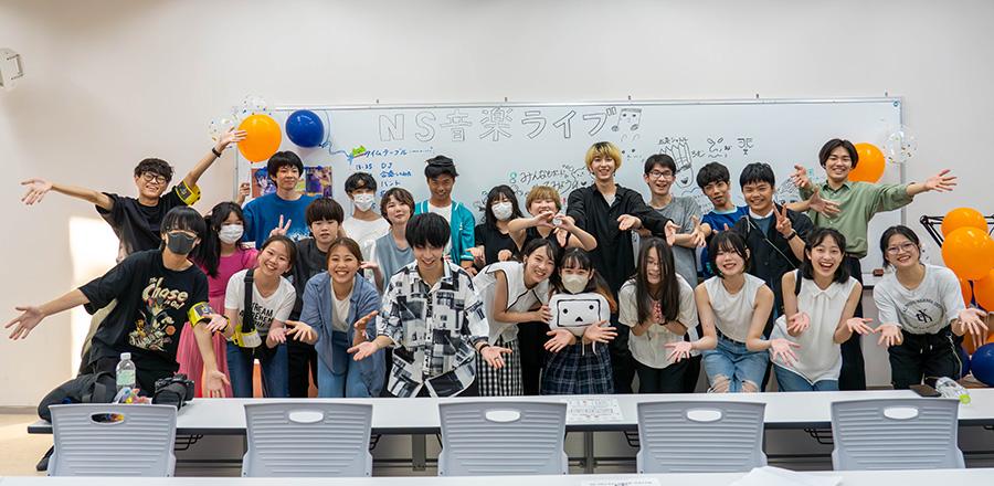 N/S音楽ライブとは音楽部初のオフラインイベントで、音楽部運営メンバーの生徒が主体となって企画したライブイベントです。日本工学院八王子専門学校協賛のもと、当日は40名近くの方にご来場、ライブ生配信では100名以上の方にご視聴いただいて大いに盛り上がりました。