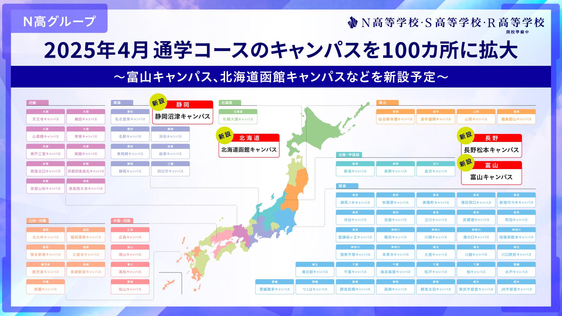 ❏ 2025年4月、通学コースのキャンパスを富山市や函館市などに新設し全国100カ所に拡大