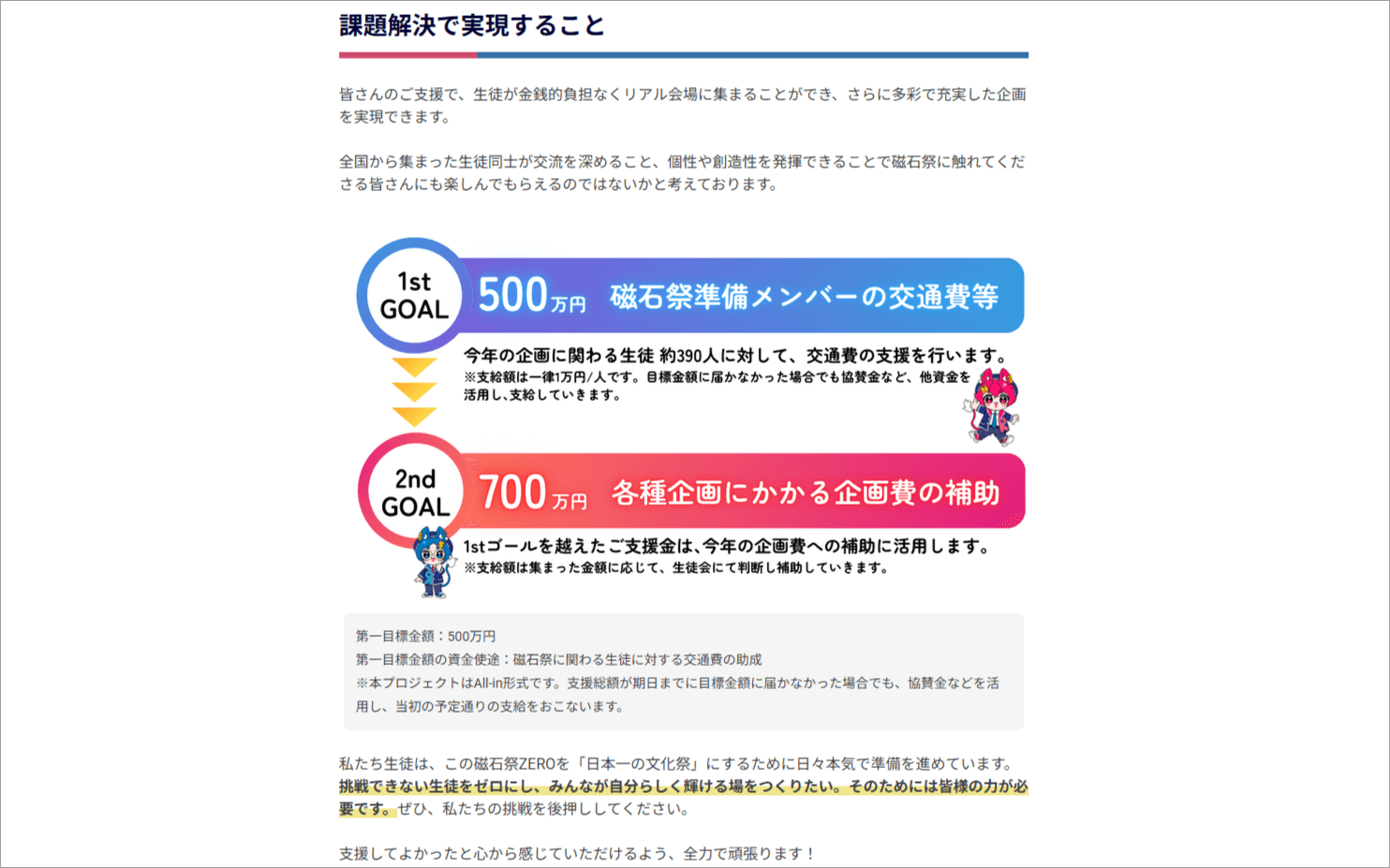 渉外営業にあたっては、生徒会の学外営業担当の生徒6名が中心となり、サポートメンバー含め約40名体制で営業活動を行い、2025年2月から企業への協賛営業活動、3月からはクラウドファンディングを実施しました。